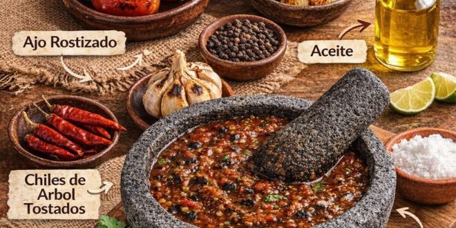 Tip Pro: Si la salsa queda muy espesa, puedes añadir un chorrito pequeño de agua tibia o un poco más de aceite mientras mueles los ingredientes. ¡Sirve con totopos o sobre unos buenos tacos!